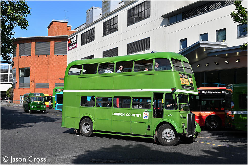 AEC Regent III RT604 at Eden bus station in High Wycombe working the 1640 724 feeder service to West Croydon. High Wycombe Classic Bus Running Day (organised by the Amersham & District Motorbus Society). Date: 2 June 2024 Manipulation Notes: None