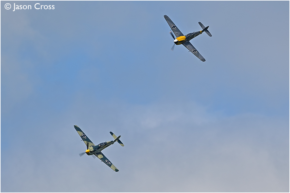 Hispano HA-1112-M1L Buchons 'White 9' and 'Yellow 10'. Sywell Airshow 2024. Date: 23 June 2024 Manipulation Notes: None