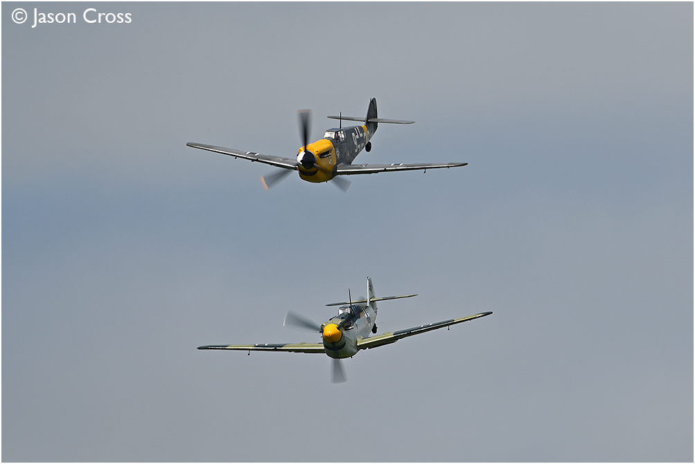 Hispano HA-1112-M1L Buchons 'White 9' and 'Yellow 10'. Sywell Airshow 2024. Date: 23 June 2024 Manipulation Notes: None
