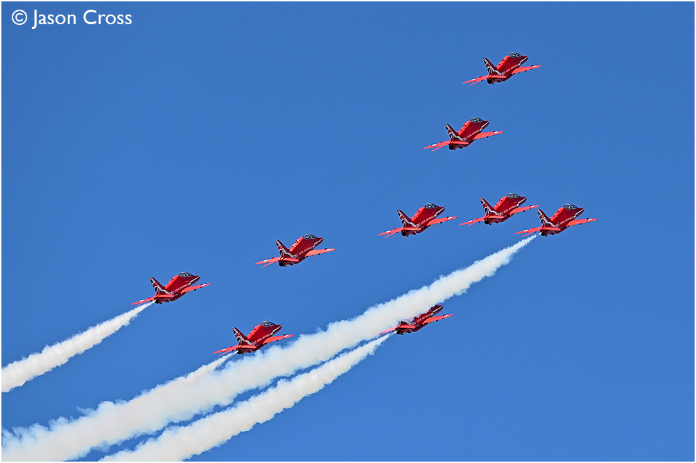 Royal Air Force Aerobatic Team, The Red Arrows, Hawk T1s. Sywell Airshow 2024. Date: 23 June 2024 Manipulation Notes: None