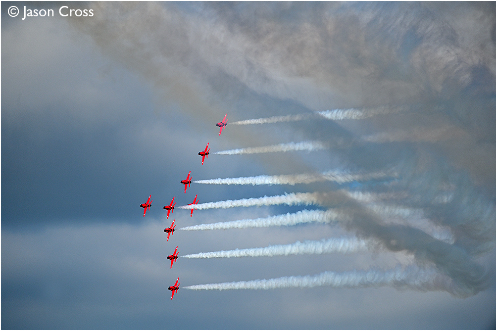 Royal Air Force Aerobatic Team, The Red Arrows, Hawk T1s. Sywell Airshow 2024. Date: 23 June 2024 Manipulation Notes: None