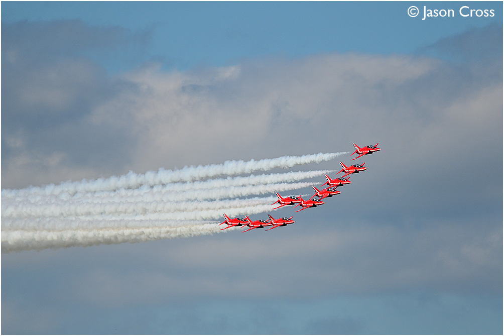 Royal Air Force Aerobatic Team, The Red Arrows, Hawk T1s. Sywell Airshow 2024. Date: 23 June 2024 Manipulation Notes: None