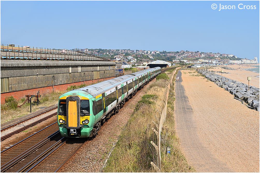 Leonards Engineering to the left and Hastings in the background, 377439 is seen