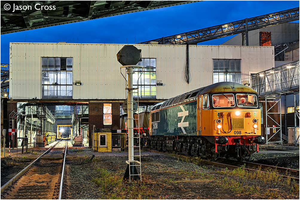 56098 draws an MGR coal train through the
