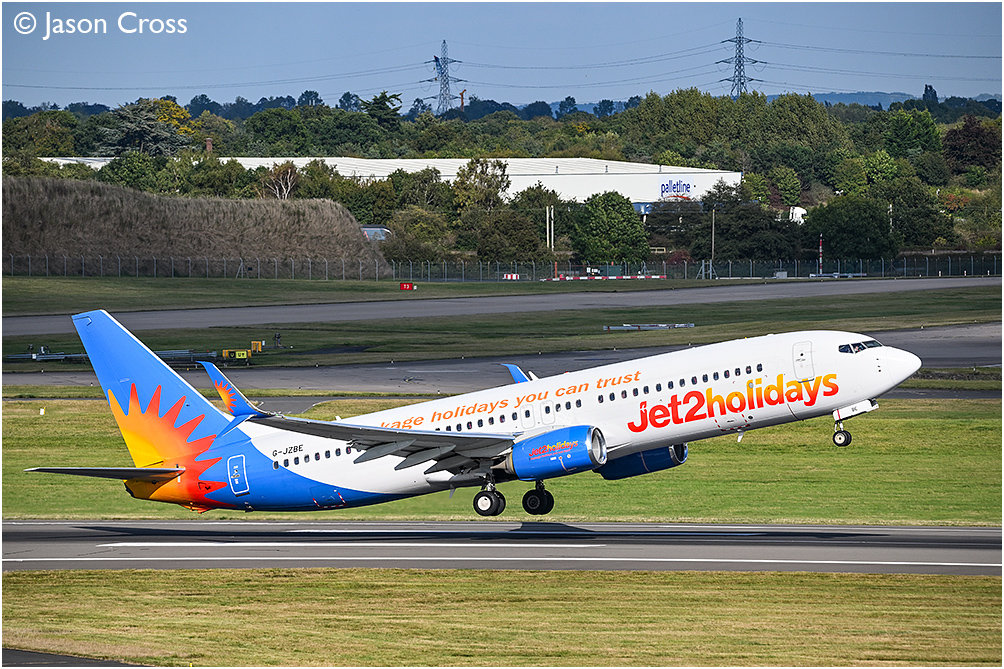 Jet2 Boeing 737 G-JZBE gets into the air with a flight for Antalya. Birmingham Airport. Date: 5 October 2024 Manipulation Notes: None