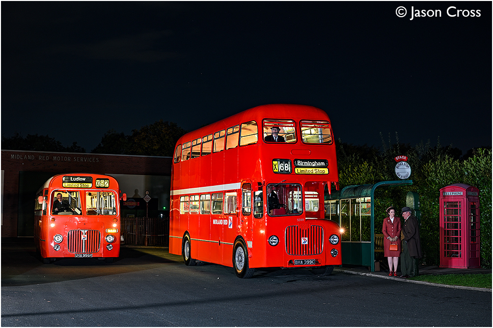 Midland Red BMMO S23 number 5956 and Midland Red BMMO D9 number 5399. David Williams photo charter at Wythall Transport Museum. Date: 5 October 2024 Manipulation Notes: None