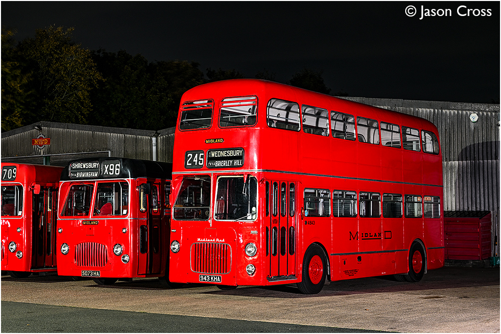 Midland Red, BMMO S15, 5073 Midland Red, BMMO D10, 4943. David Williams photo charter at Wythall Transport Museum. Date: 5 October 2024 Manipulation Notes: None