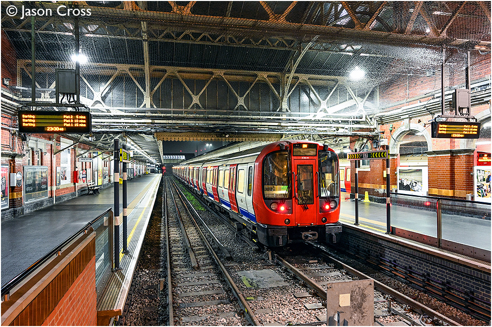 21382 waits to depart from Hammersmith with a Hammersmith & City Line service for Barking. Date: 28 October 2024 Manipulation Notes: None