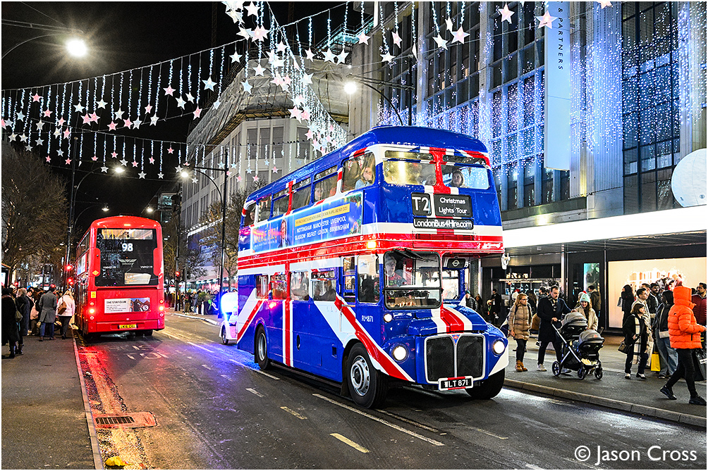 Oxford Street, Westminster, London - Routemaster RM871 works a Londoner Buses T2 Christmas lights tour. Date: 21 December 2024 Manipulation Notes: None