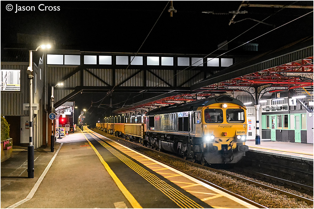 66549 at Grantham with a 6Y70 2319 Doncaster Up Decoy to Welwyn North engineering train. Date: 18 January 2025 Manipulation Notes: None