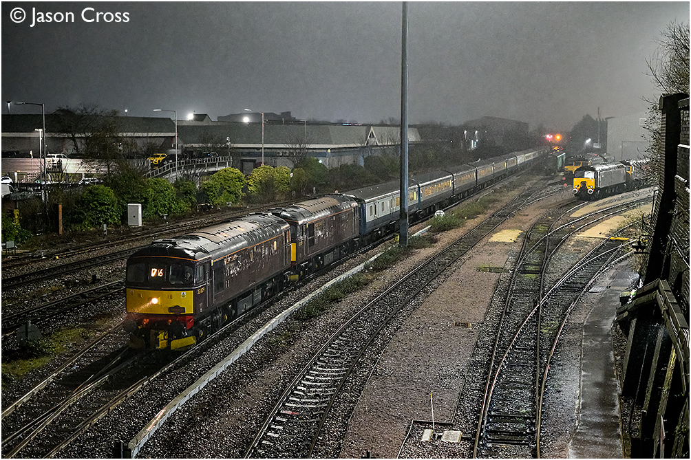 33029 'Glen Loy' and 33207 'Jim Martin' pass Leicester Depot with a 1Z76 1459 Acton Canal Wharf to Bristol Temple Meads railtour. Date: 15 February 2025 Manipulation Notes: None