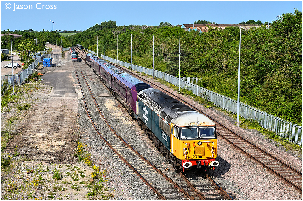 56098 is attached to 810003 at Asfordby Test Centre (RIDC Melton) during coupling tests. Date: 13 June 2025 Manipulation Notes: None Camera mounted on a tall pole and remotely fired