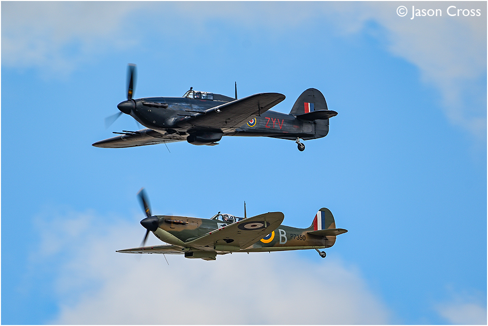 Royal Air Force Battle of Britain Memorial Flight Hawker Hurricane MkIIc PZ865 and Supermarine Spitfire MkIIa P7350. Armed Forces Day, Cleethorpes. Date: 28 June 2025 Manipulation Notes: None
