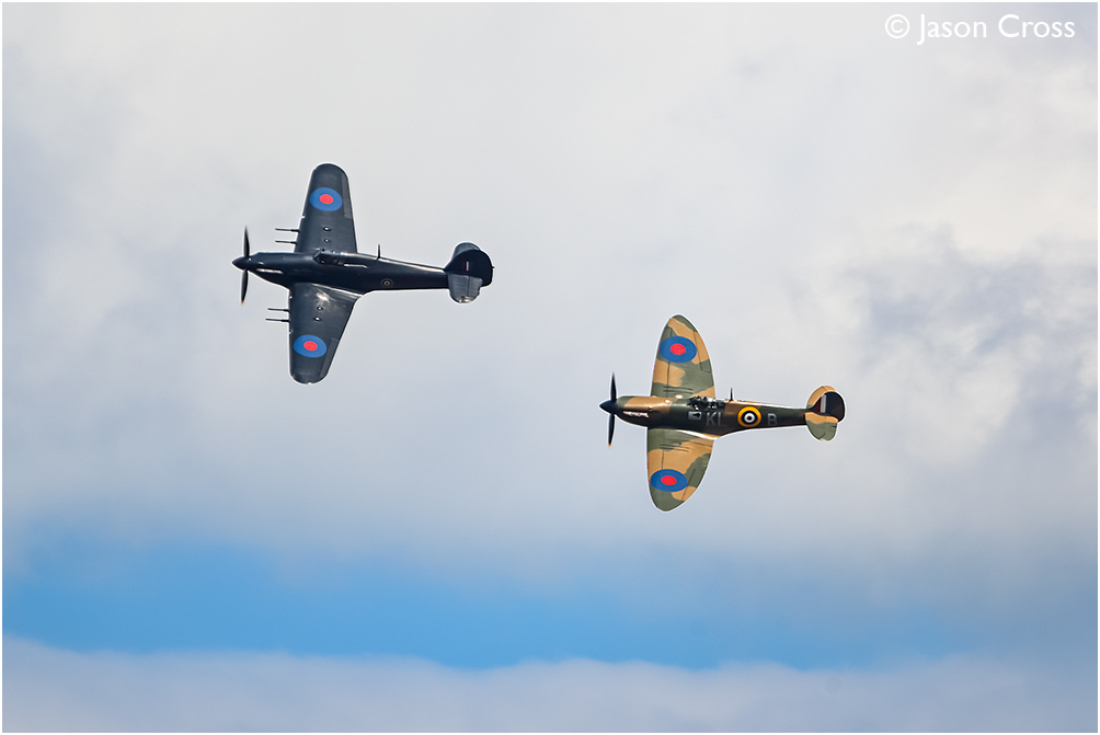 Royal Air Force Battle of Britain Memorial Flight Hawker Hurricane MkIIc PZ865 and Supermarine Spitfire MkIIa P7350. Armed Forces Day, Cleethorpes. Date: 28 June 2025 Manipulation Notes: None