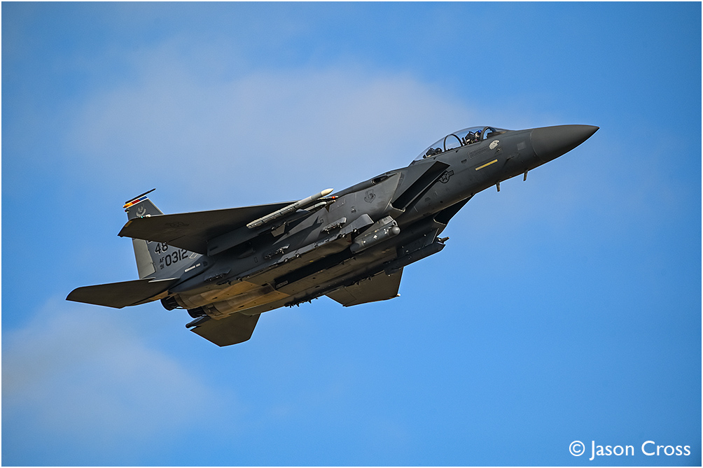 USAF McDonnell Douglas F15E 'Strike Eagle' 91-0312. Runway 05 departure, RAF Lakenheath. Date: 30 June 2025 Manipulation Notes: None