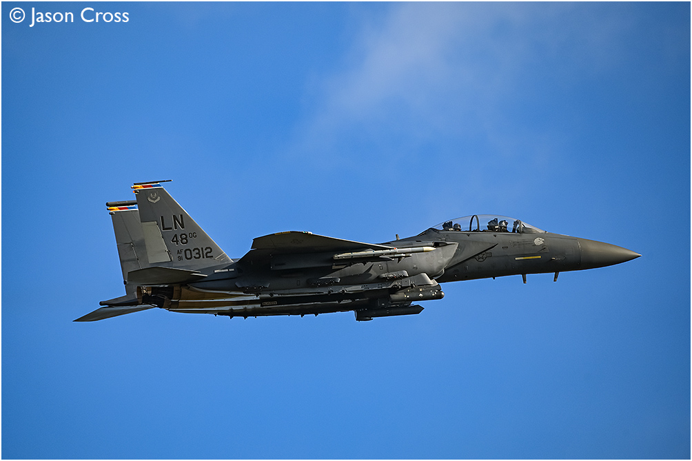 USAF McDonnell Douglas F15E 'Strike Eagle' 91-0312. Runway 05 departure, RAF Lakenheath. Date: 30 June 2025 Manipulation Notes: None