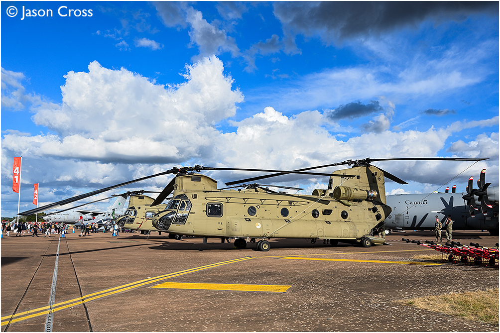 Royal Netherlands Air Force Boeing CH-47F Chinooks D-483 and D-473. Royal International Air Tattoo 2025, RAF Fairford. Date: 20 July 2025 Manipulation Notes: None