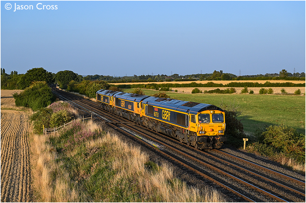 66307 'Ipswich Town' and 66749 'Christopher Hopcroft MBE pass Burbage Common