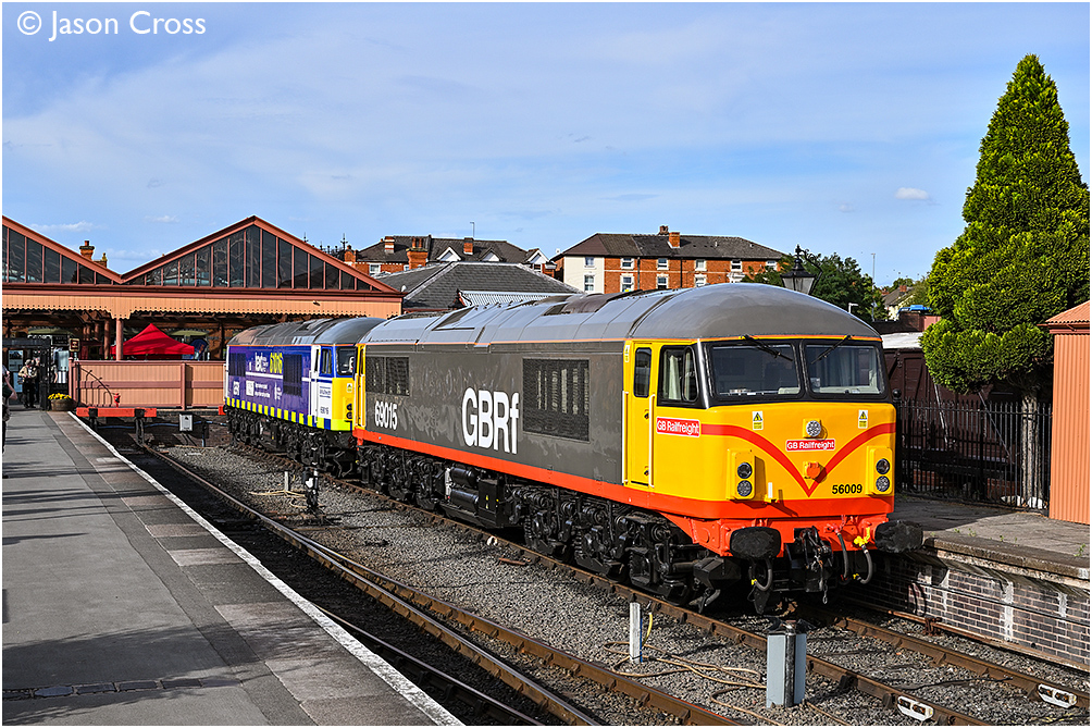 69015 and 69016 'British Transport Police' pose in the sun at Kidderminster during the Severn Valley Railway / GB Railfreight Weekend. Date: 6 September 2025 Manipulation Notes: None