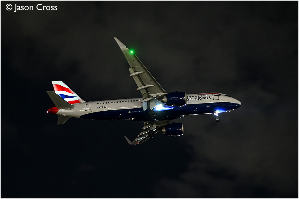 British Airways Airbus A320 G-TTNJ on final approach to Heathrow's runway 27L with a flight from Munich. Date: 7 October 2025 Manipulation Notes: None