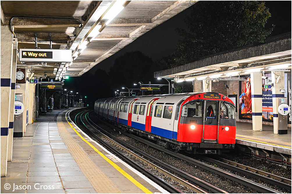 A train of 1973 Tube Stock formed of 144-544-344+425-625-225 arrives at Osterley with a Cockfosters to Heathrow Terminal 4 service. Date: 7 October 2025 Manipulation Notes: None