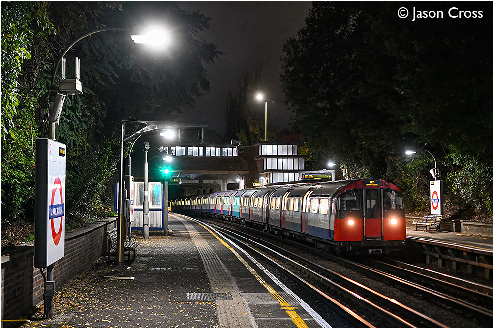 A Rayners Lane to Arnos Grove Piccadilly Line service arrives at Park Royal formed of 1973 Tube Stock 212-612-412+419-619-219. Date: 7 October 2025 Manipulation Notes: None