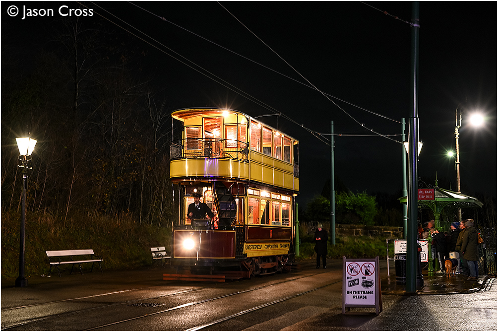 Chesterfield 7 at the Town End terminus. Crich Tramway Village 'Tramlight' event. Date: 9 November 2025 Manipulation Notes: None
