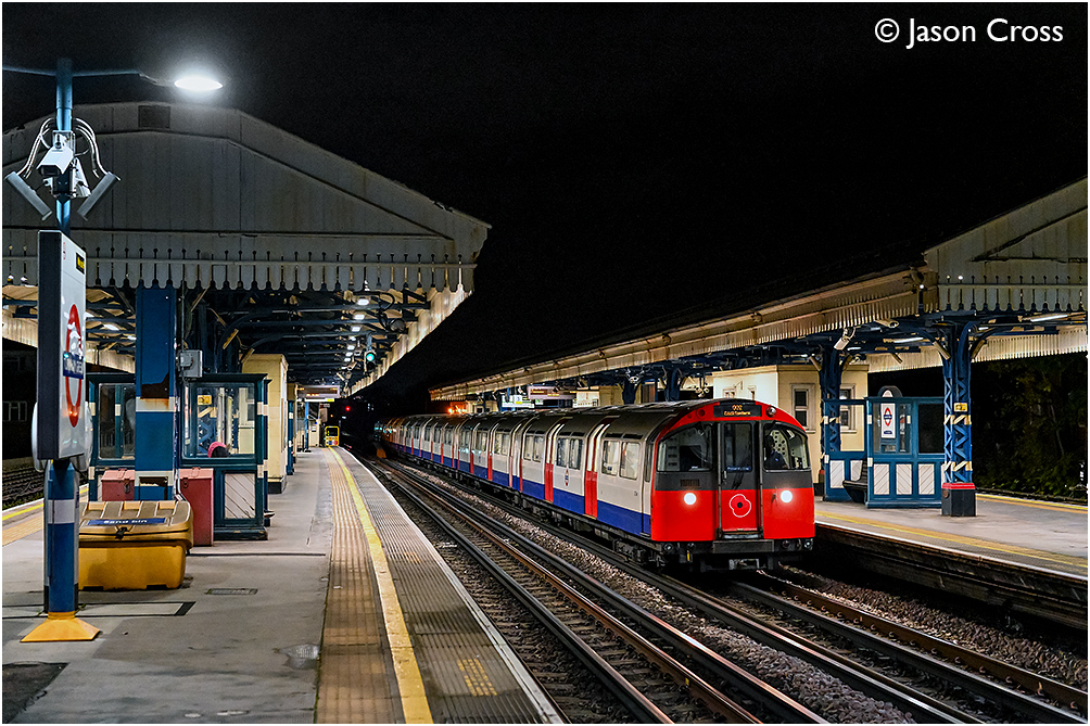 1973 Tube Stock 212-612-412+419-619-219 calls at Turnham Green with a Heathrow Terminal 5 to Cockfosters Piccadilly Line service. Date: 23 November 2025 Manipulation Notes: None