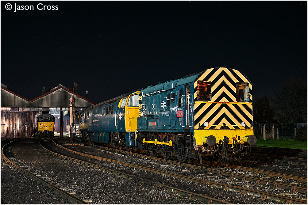 08604 'Phantom' is about to push D1023 'Western Fusilier' into the shed at Didcot. Timeline Events photo charter. Date: 29 November 2025 Manipulation Notes: None