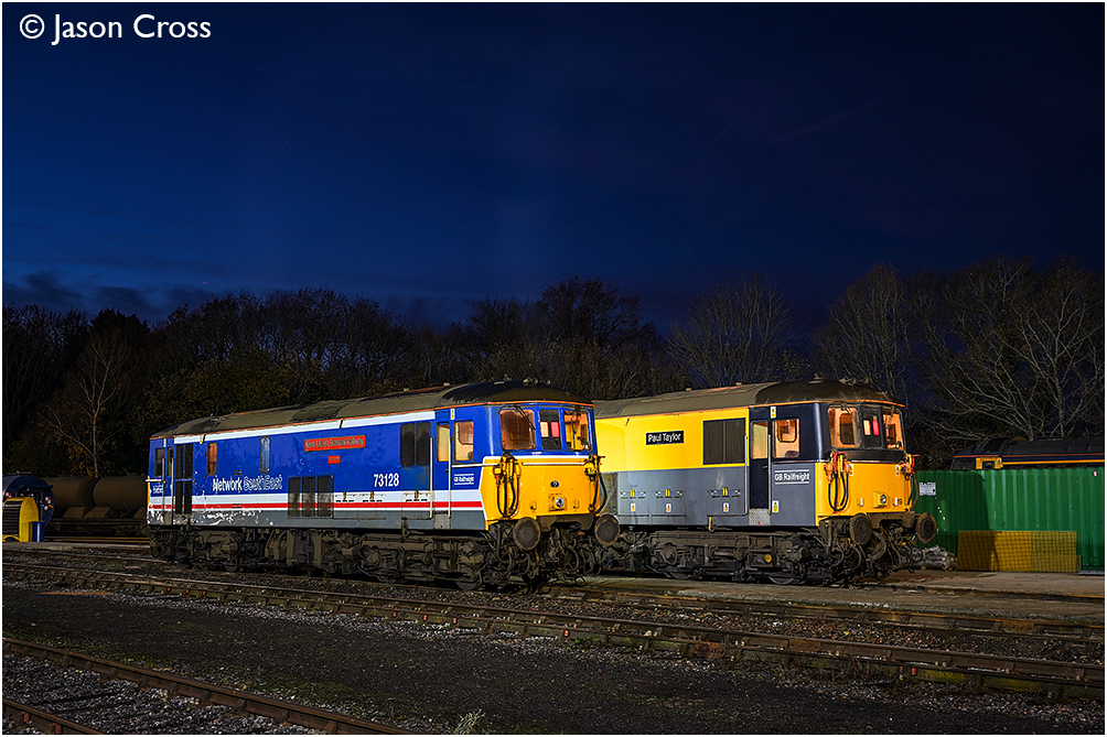 73128 'Kent & East Sussex Railway' and 73119 'Paul Taylor' at Tonbridge West Yard.
