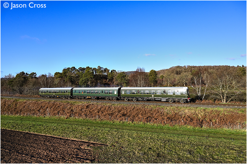 Class 108 DMU 52064+59250+51941 passes Rifle Range with the 1245 Bewdley to Kidderminster. Severn Valley Railway Winter Steam Gala. Date: 3 January 2026 Manipulation Notes: None Camera mounted on a tall pole and remotely fired