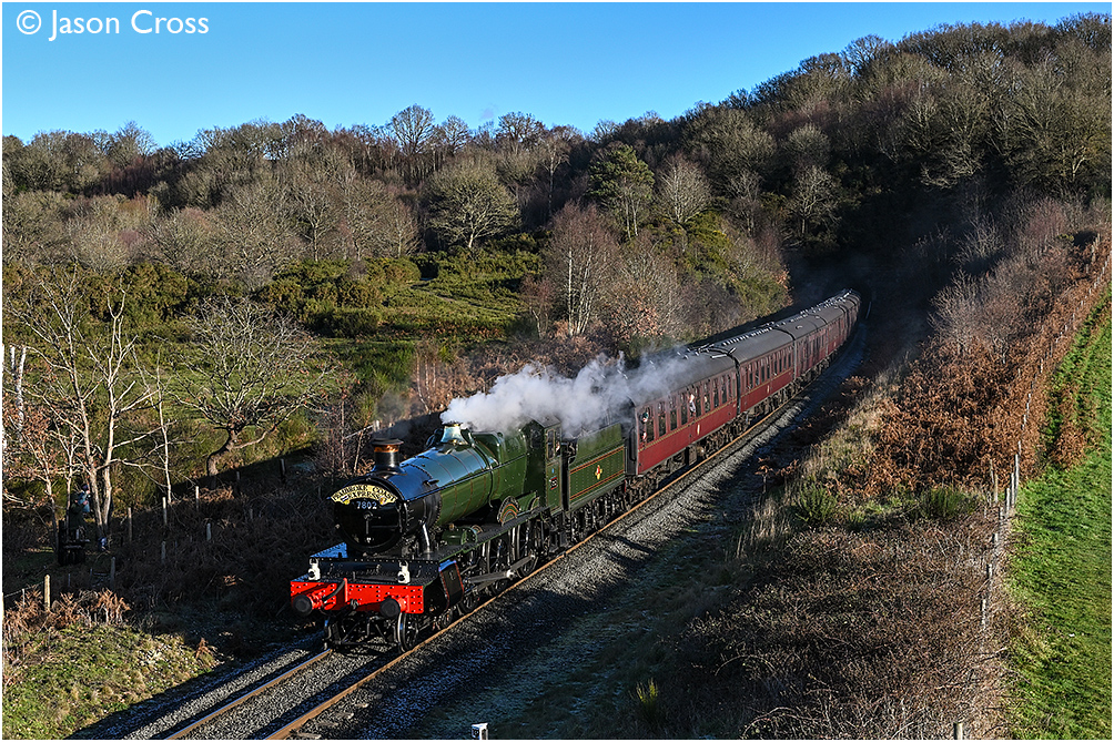 7802 'Bradley Manor' leaves Bewdley Tunnel with the 1305 Kidderminster to Bridgnorth. Severn Valley Railway Winter Steam Gala. Date: 3 January 2026 Manipulation Notes: None Camera mounted on a tall pole and remotely fired