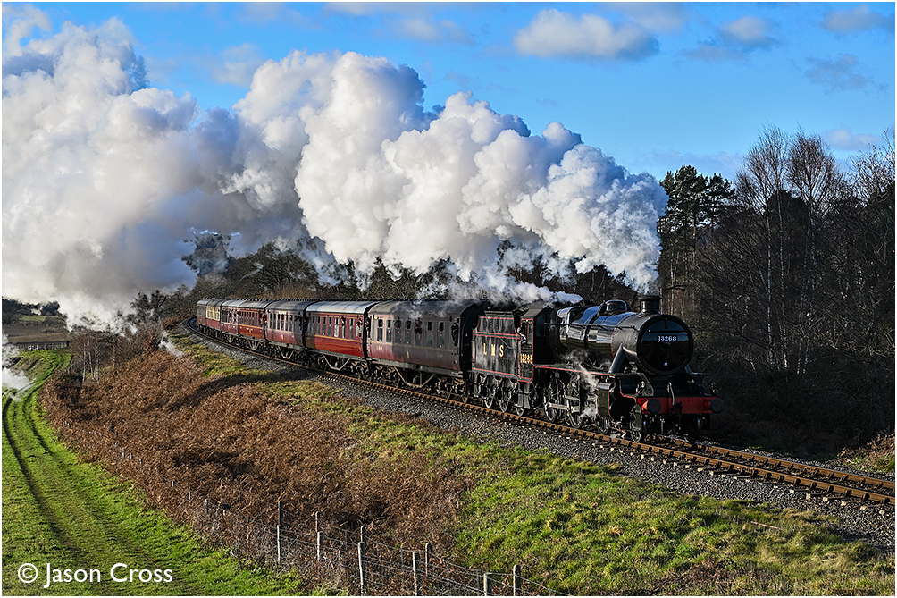 Stanier Mogul 13268 climbs past Rifle Range with the 1235 Bridgnorth to Kidderminster. Severn Valley Railway Winter Steam Gala. Date: 3 January 2026 Manipulation Notes: None Camera mounted on a tall pole and remotely fired
