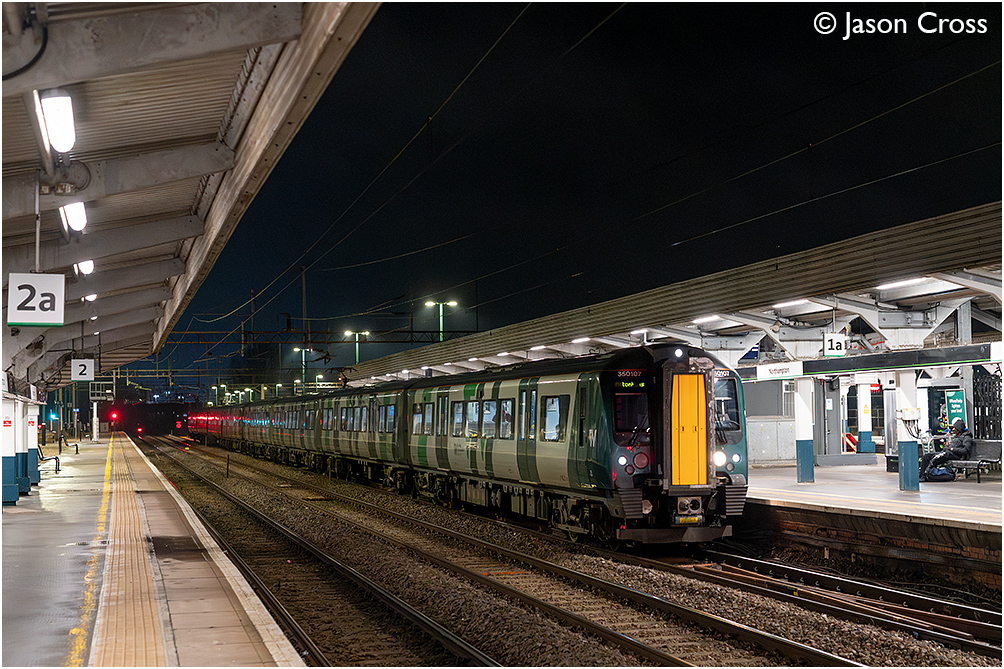 350107 and 350402 arrive at Northampton with the 1Y70 2006 Birmingham New Street to Milton Keynes Central. Date: 4 February 2026 Manipulation Notes: None