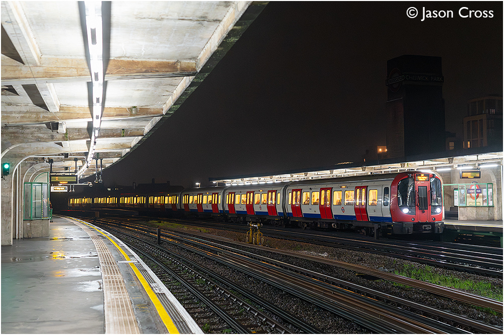 An Upminster to Ealing Broadway District Line service calls at Chiswick Park. Date: 10 February 2026 Manipulation Notes: None