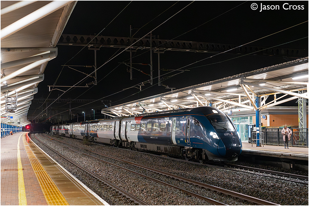 807007 arrives at Rugby's platform 1 with the 9G47 2129 London Euston to Wolverhampton Avanti service. Date: 12 February 2026 Manipulation Notes: None