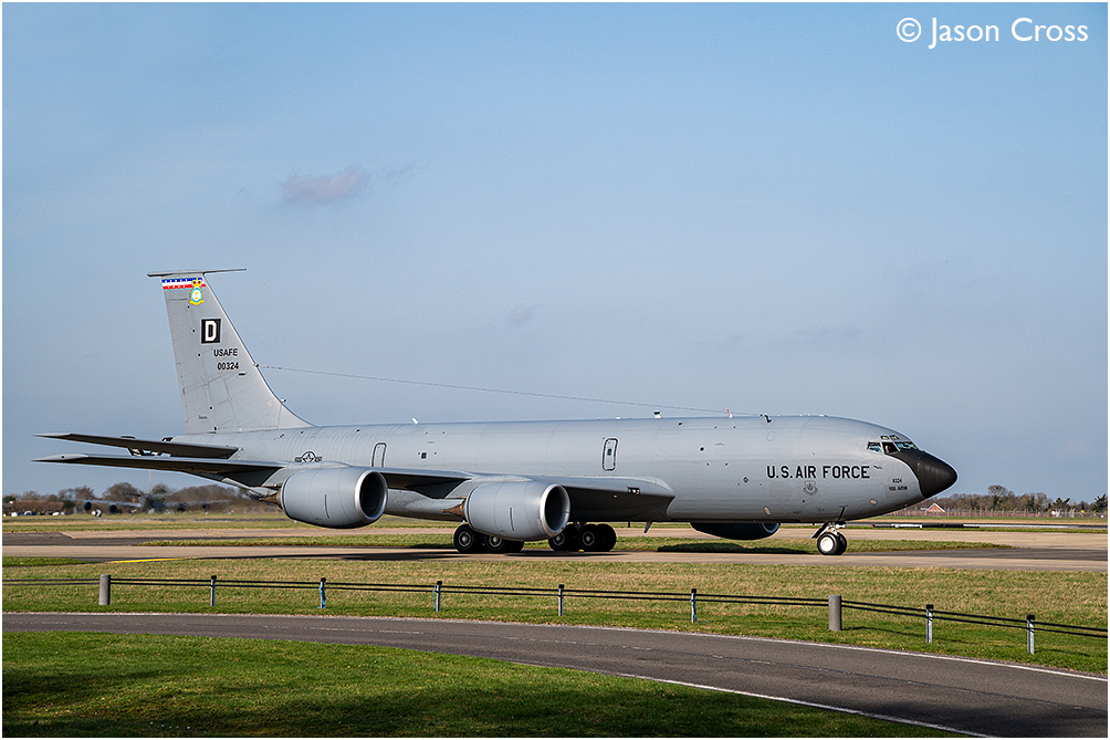 USAF Boeing KC135 Stratotanker 600-324 taxiing back to stand at RAF Mildenhall. Date: 25 February 2026 Manipulation Notes: None