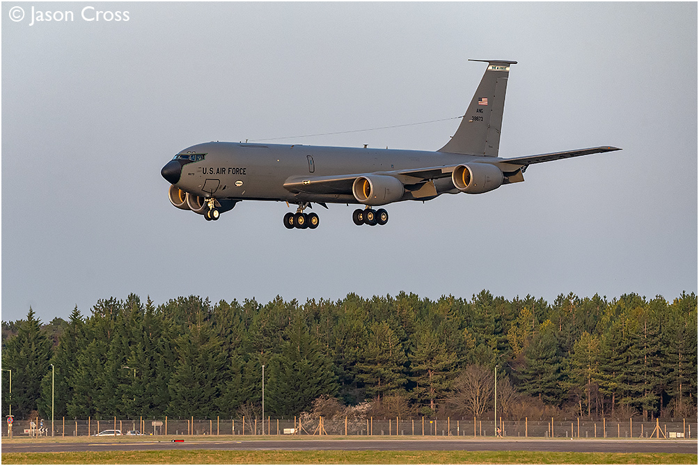 USAF Boeing KC135 Stratotanker 63-8873 on final approach to runway 28 at RAF Mildenhall. Date: 25 February 2026 Manipulation Notes: None