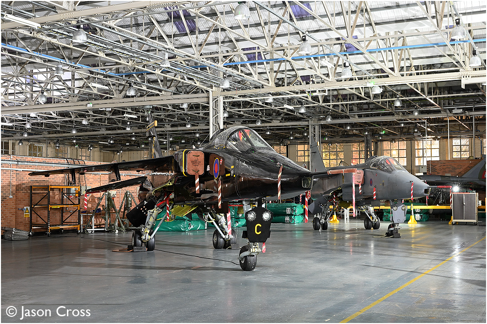 Jaguars XX965 and XX117, RAF Cosford Engineering Training Centre. Threshold.aero photo shoot. Date: 23 January 2020 Manipulation Notes: None
