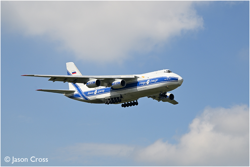 Volga-Dnepr Airlines Antonov AN124 RA-82078 approaches East Midlands Airport with a cargo flight from Paris Chalons Vatry Airport. Date: 16 June 2020 Manipulation Notes: None