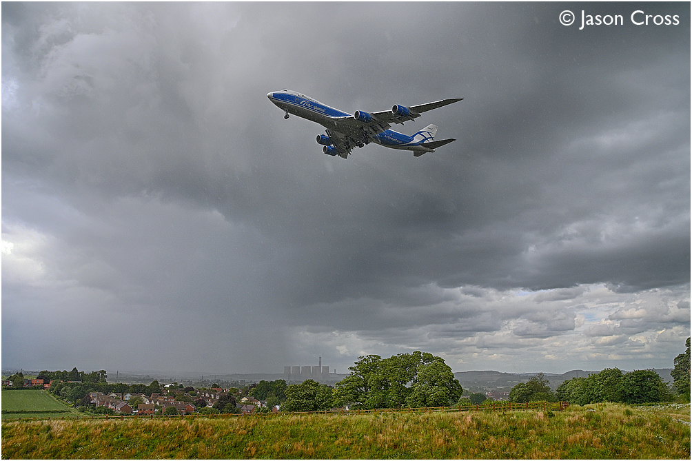 AirBridge Cargo Airlines Boeing 747 VQ-BRJ passes over Kegworth as it comes in to land at East Midlands Airport with flight RU9425 from Moscow Sheremetyevo Airport. Date: 21 June 2020 Manipulation Notes: None