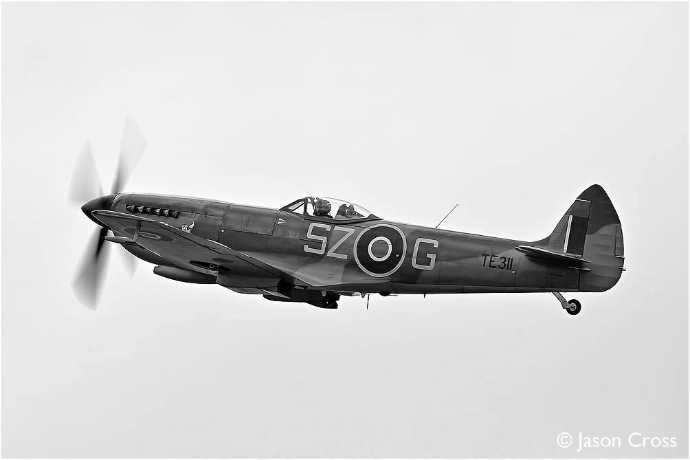 Supermarine Spitfire Mark XVIe TE311 takes off from RAF Coningsby to take part in a memorial flight to mark VJ Day. Date: 15 August 2020 Manipulation Notes: None