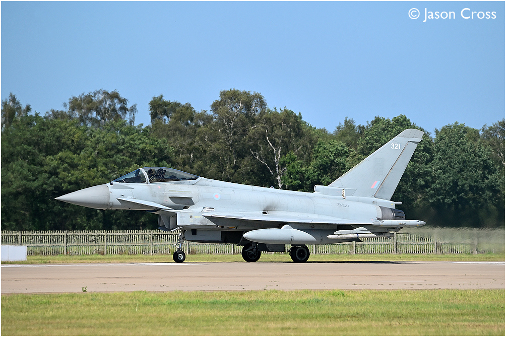 Eurofighter Typhoon ZK321 lining up on runway 25 at RAF Coningsby. Date: 20 August 2020 Manipulation Notes: None