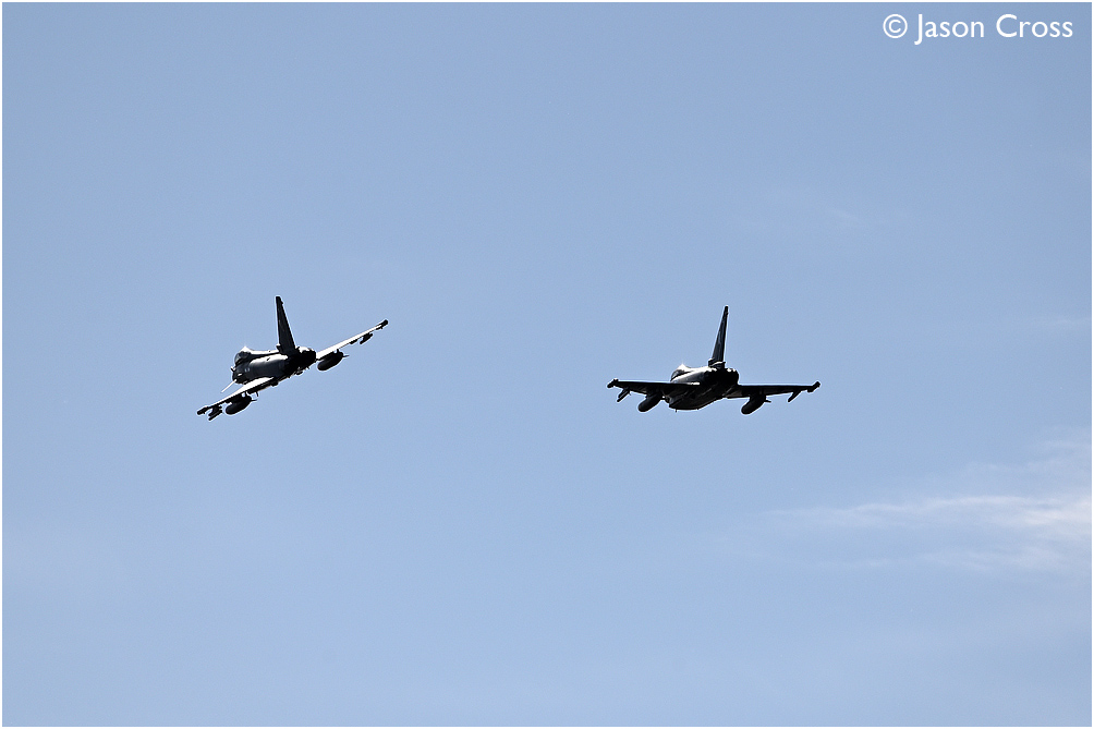 Break! A pair of Eurofighter Typhoons over RAF Coningsby. Date: 20 August 2020 Manipulation Notes: None