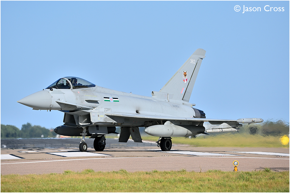 Eurofighter Typhoon ZK362 taxiing in after landing at RAF Coningsby. Date: 20 August 2020 Manipulation Notes: None