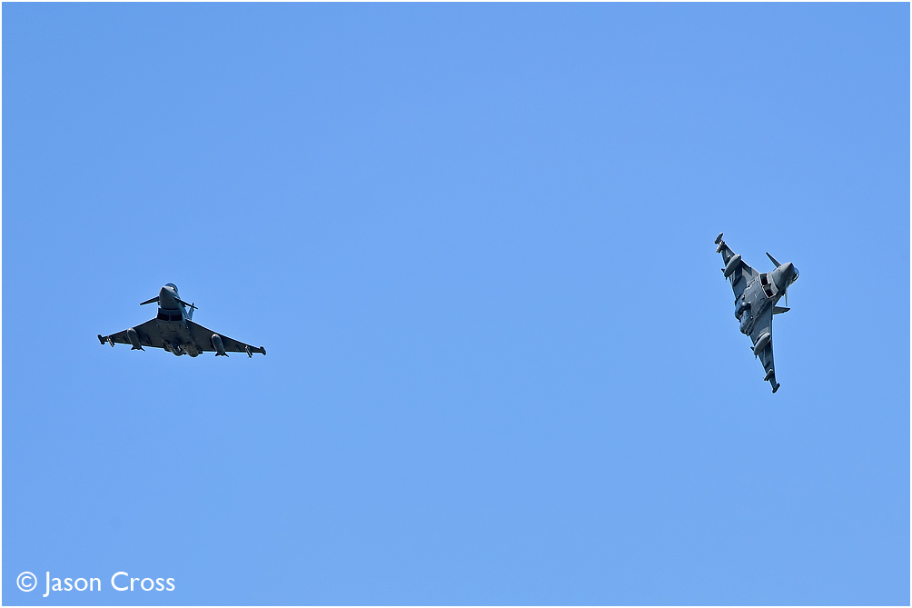 Break! Eurofighter Typhoons ZK428 (left) and ZK357 (right) over RAF Coningsby. Date: 20 August 2020 Manipulation Notes: None