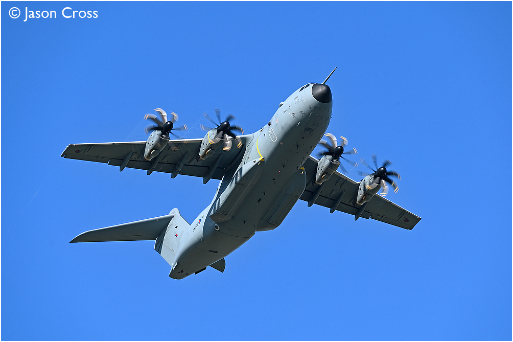 Airbus A400M Atlas ZM406 takes off from RAF Brize Norton bound for Siauliai in Lithuania. Date: 30 August 2020 Manipulation Notes: None