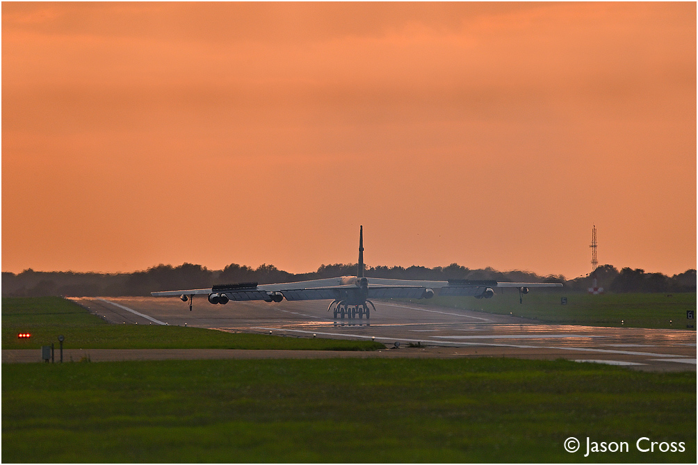B52 bomber 60-0005 lands at RAF Fairford.