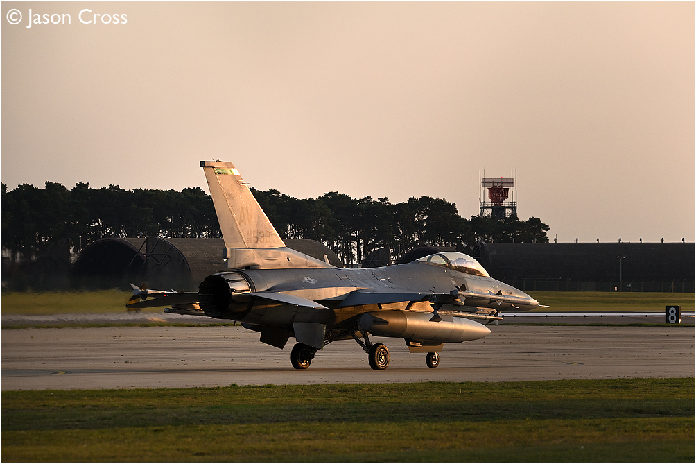 USAF F16 88-532 catching a glint at RAF Lakenheath.