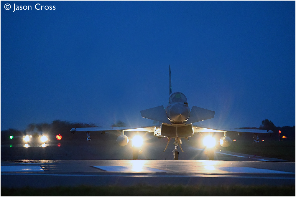 Two Typhoons recover to RAF Coningsby in the blue hour. Date: 7 October 2020 Manipulation Notes: None